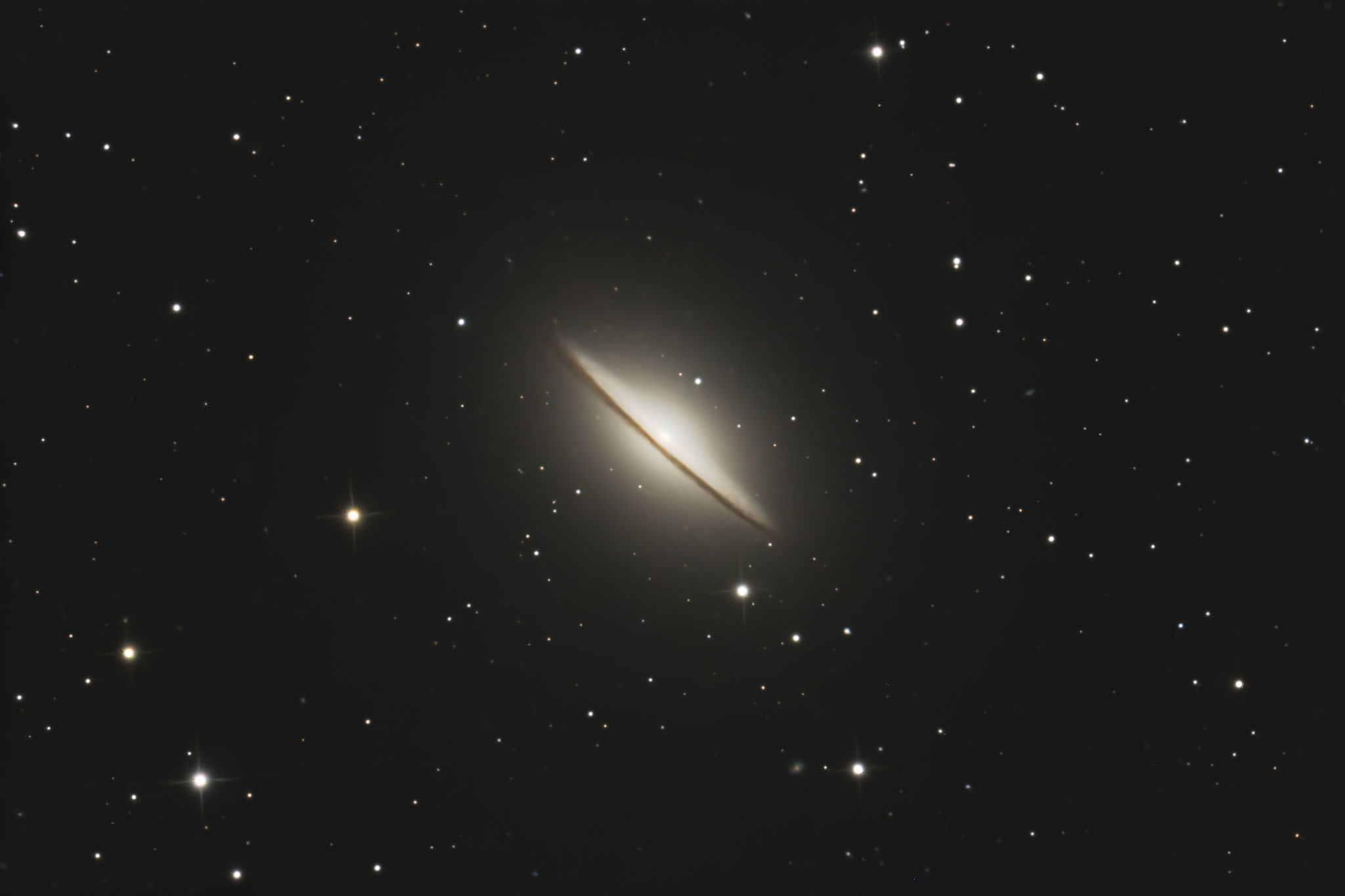M104, Sombrero galaxy, ↕ 30 Mio LY, , ☼ 8.4, 1620 mm, ƒ8, ISO 1600, 64x3 min, # 14x10 mm, Lohnberg (Bortle 4.9; 10x), 20.04.25