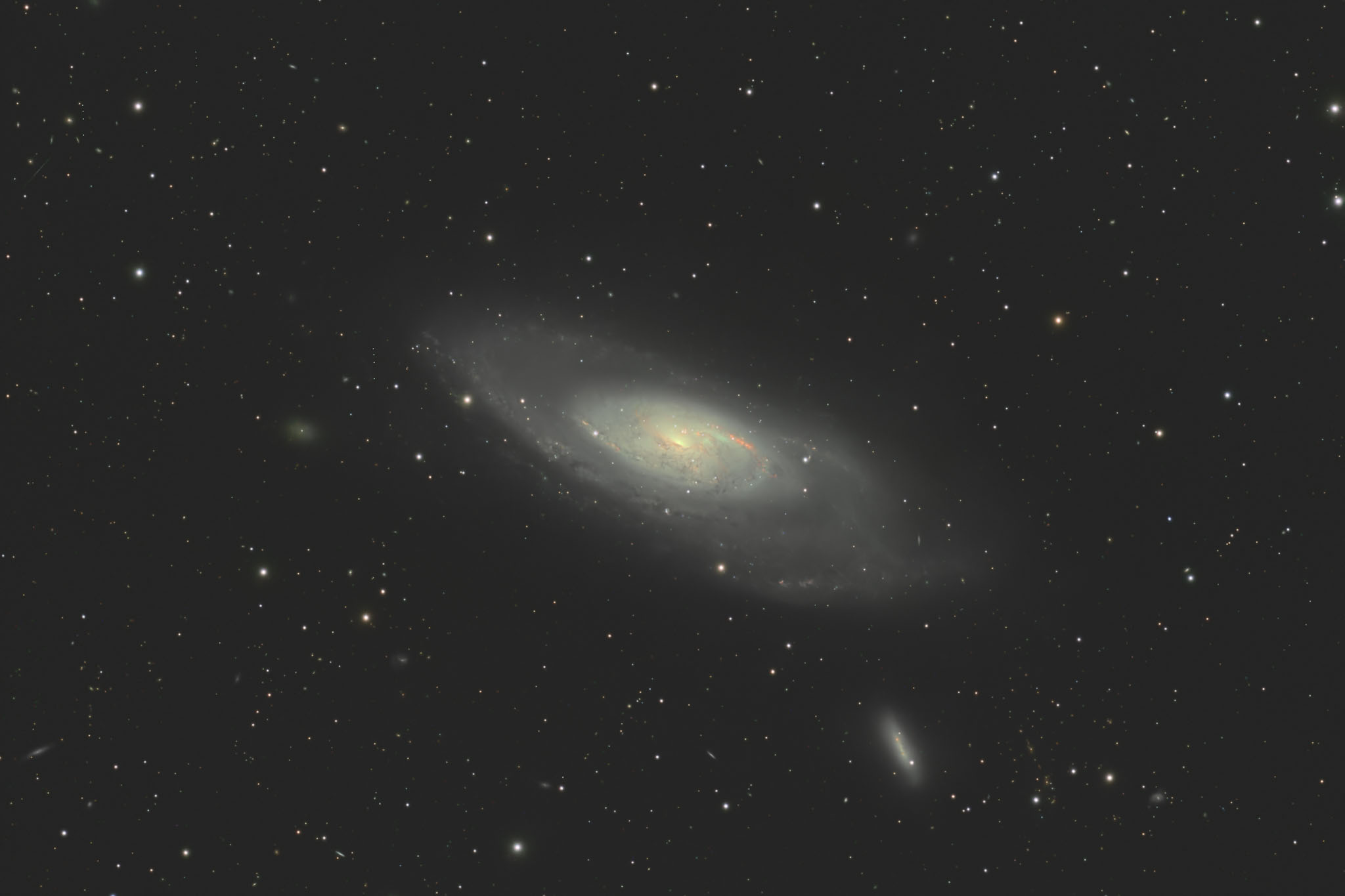 M106,, ↕ 24 Mio LY, Ø 19'x8', ☼ 8.4, 840 mm, ƒ7, Gain 100, 100x3 min + 160x3min DNB, # 13x8 mm, Gipf-Oberfrick (Bortle 4.8; 10x), 12.03.26