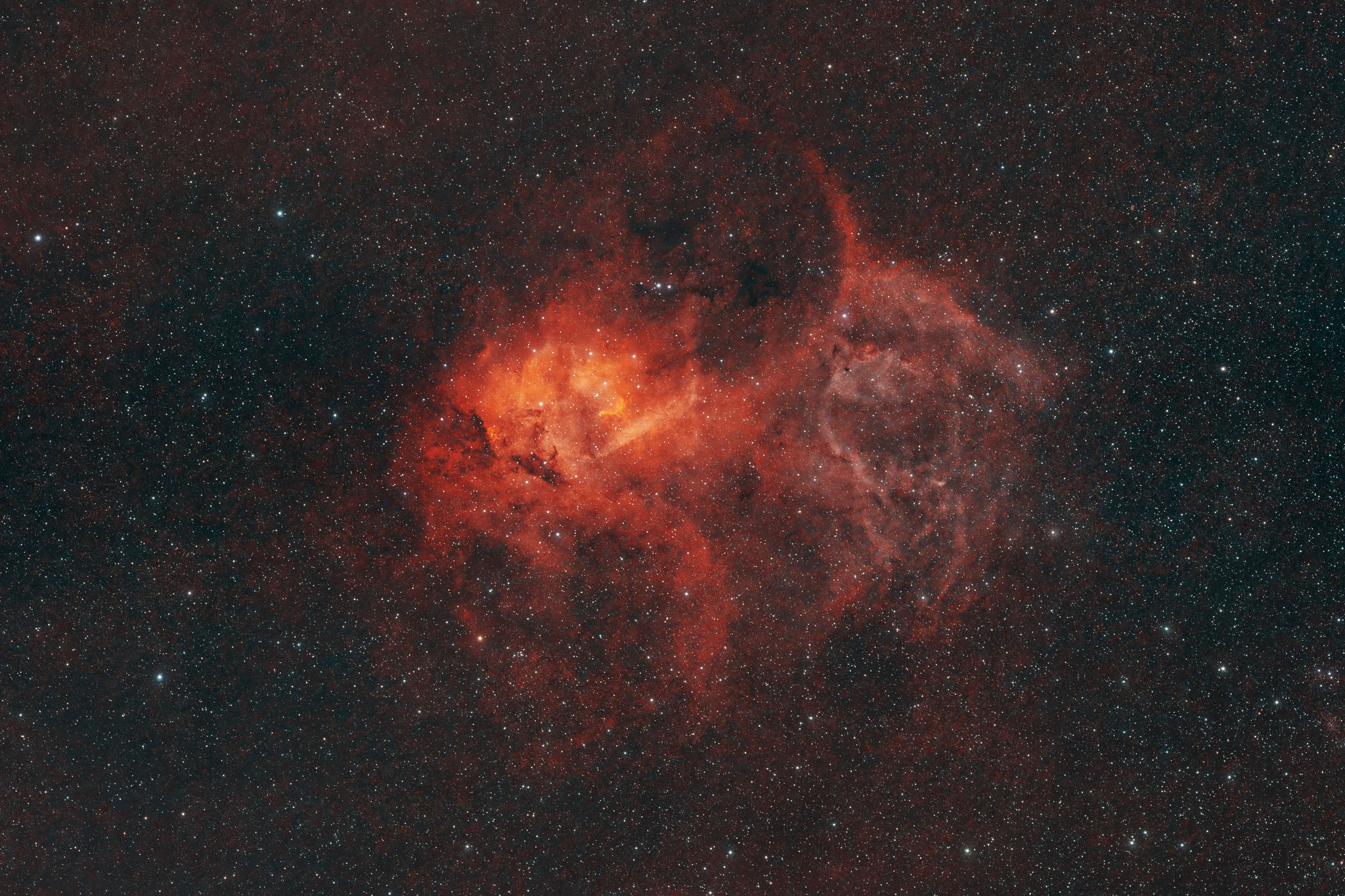 SH2-132, Lion nebula, ↕ 10000 LY,,, 500 mm, ƒ5.6, ISO 1600, 36x5 min Ha+OIII, # 26x17 mm, Mettauerberg (Bortle 4.6; 10x), 07.07.23